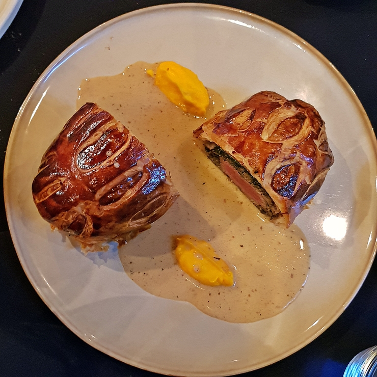 비프 웰링턴. 레커의 시그니처 메뉴라고 할 수 있다. 대부분의 고객이 이 비프 웰링턴을 즐기고 있다. 비프 웰링턴은 반으로 잘라 나오는데 굉장히 아름다운 모습이다. 이런 아름다운 모습은 사진을 더 찍어야지.