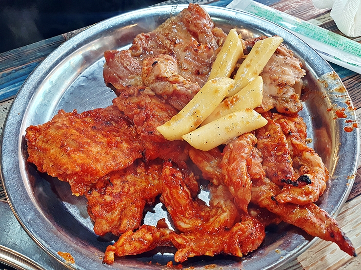 다음으로 먹은 고추장 닭갈비. 목살과 같은 양념을 사용했다. 닭다리 살과 허벅지 살로 만든 닭갈비인데 그만큼 부드러운 식감을 느낄 수 있었다. 난 닭가슴살을 좋아하지만 닭갈비의 경우 이렇게 부드러운 부위를 먹는 것이 좋다.