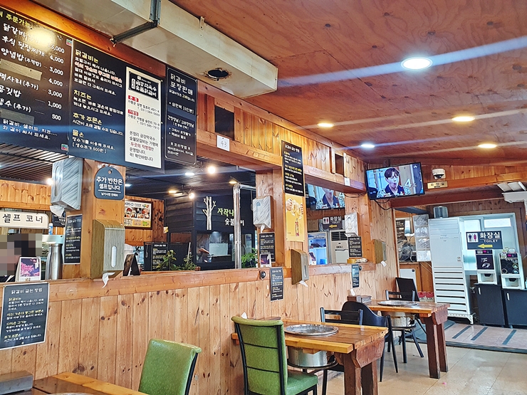 반찬. 쌈무, 피클, 쌈장, 마늘, 코울슬로, 김치, 상추, 깻잎과 동치미가 나온다. 반찬 가짓수가 그리 많지 않지만 닭갈비를 먹을 때 딱 필요한 것들만 나온다. 처음에는 반찬을 가져다주고 이후에는 먹고 싶은 반찬만 셀프로 가져와서 먹으면 된다.
