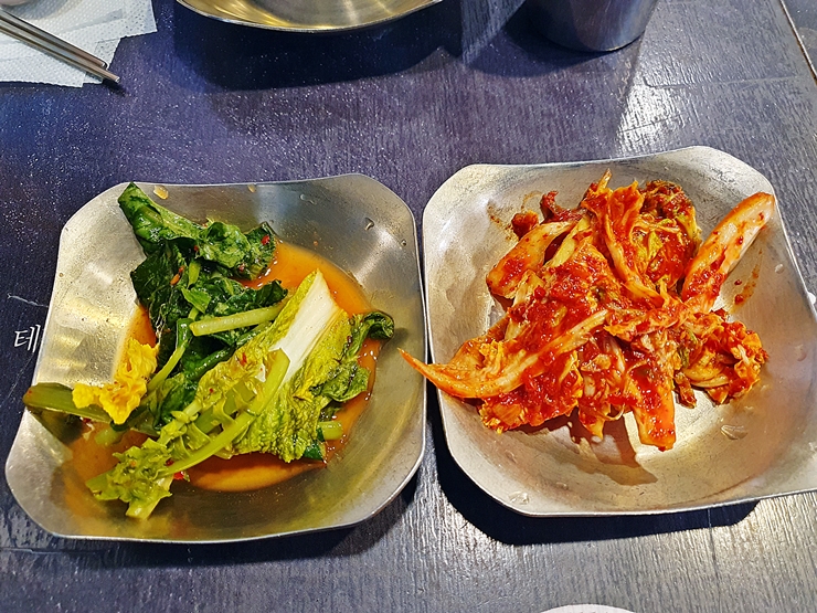 반찬. 반찬은 열무와 김치만 나온다. 조촐하지만 충분한 반찬이다. 열무, 김치 모두 맛있어서 리필을 요청하고 계속 먹었다. 김치가 참 맛있어서 막걸리를 한 병 주문할까 했지만 이후에 영화를 봐야 하기 때문에 눈물을 머금고 주문하지 않았다. 영화관에서 민폐를 끼칠 수는 없지.