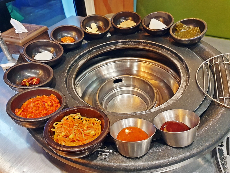 반찬. 양념 소스, 멜젓, 콩나물 무침, 무생채, 젓갈, 소금, 쌈장, 마늘, 콩가루, 쌈무와 깻잎 장아찌가 나온다. 개인적으로 콩나물을 그리 좋아하지 않는 편인데 원조부안집의 콩나물 무침은 맛이 좋아서 한 번 리필을 해서 먹었다. 처음 나올 때 양이 많이 나오지 않는 편인데, 부족할 경우 셀프 바를 통해서 얼마든지 리필이 가능하다.
