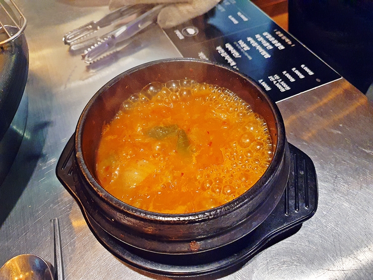 네이버 예약을 통해 받은 부안 김치찌개. 제법 칼칼한 맛이 났는데, 맛있게 칼칼해서 땀 흘리면서 먹었다. 예전에는 고깃집을 가면 된장찌갠 김치찌개를 무료로 주는 곳이 많았는데, 이제는 물가 인상과 재료비 절감을 위해서 주는 곳이 많이 없다. 문득 예전의 풍성함이 그립구나.