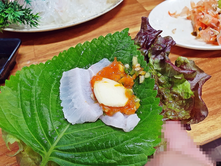 선어 회는 소량의 와사비와 함께 간장을 찍어 먹지만, 이런 활어 회는 본인의 취향에 따라 먹는 것이 좋다. 난 상추, 깻잎, 마늘과 쌈장을 사용해서 먹었다. 흔히 엔가와라 불리는 광어 뱃살 부위에서 느껴지는 눅진한 맛이 좋았다. 선어 회라면 이 가격에 이런 구성으로 나올 수 없으니 만족스럽게 잘 먹었다.