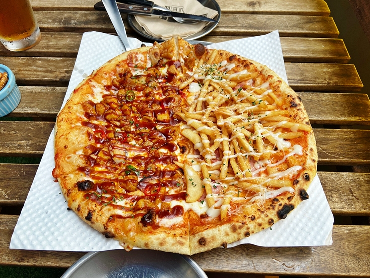 피자는 하프&하프도 주문이 가능하다고 해서 갈릭 바베큐 피자와 투머치 포테이토 피자를 주문했다. 피자 토핑만 보면 평범한 축에 속하는 피자였는데 도우가 쫀득하고 쫄깃한 것이 특징이었다. 생긴 것은 팬 피자에 가까운데 식감은 나폴리 피자에 가까운 그런 식감이었다. 투머치 포테이토 피자는 피자와 후라이를 동시에 먹는 느낌이었고 갈릭 바베큐 피자는 매콤한 맛이 나는 불고기 피자 맛이었다. 더블 페퍼로니 피자가 인기 많다는데 다음에는 그것을 먹어봐야지. 토핑은 만족스럽지 못했지만 도우 식감에 만족을 느낀 이목구비. 피자와 수제 맥주를 즐기고 싶다면 추천하는 곳이다.