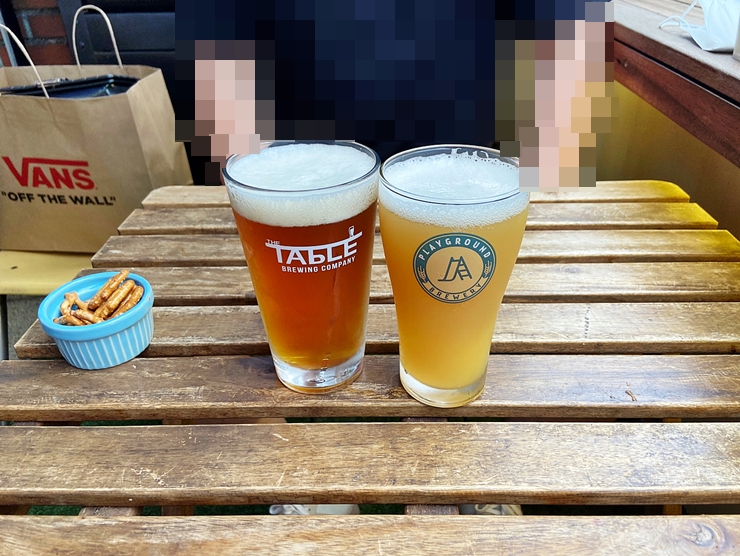 수제 맥주와 더불어 어쩌고 맥주와 저쩌고 맥주 등 다양한 맥주를 판매하고 있었다. 와인, 위스키에 이어 요새는 맥주가 굉장히 인기가 많다고 한다. 맥주 박람회 사진을 보면 생판 처음 들어보는 맥주도 많이 나온다. 난 맥주는 공부해본 적이 없고 기껏해야 라거, 에일 정도만 아는 정도라서 가장 무난한 맥주를 주문하기로 했다.