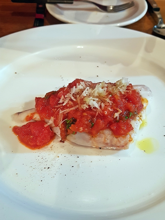 대구 토마토 찜. 다 아는 맛이라서 딱히 흥미롭지 않은 조합이었는데 부드럽게 찐 담백한 대구와 토마토의 맛이 잘 어울렸다. 찜이 아닌 구이로 만들어도 상당히 잘 어울릴 것 같았다.