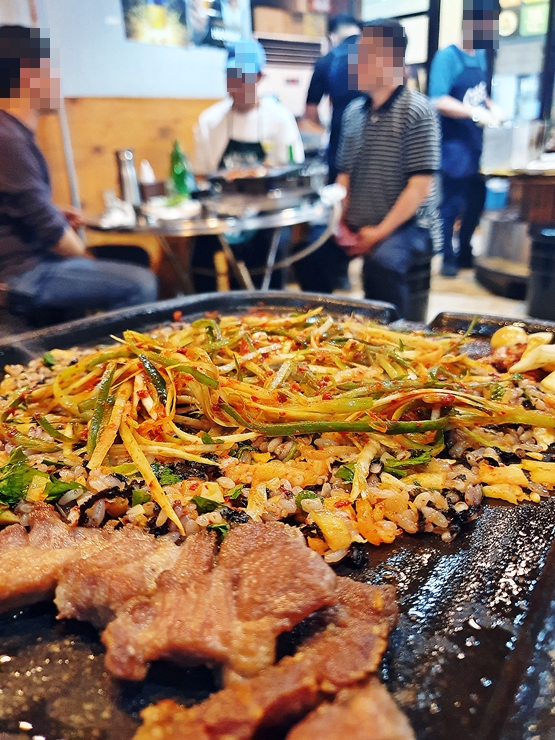 고기를 먹고 술을 마시고 취했으면 디저트로는 꼭 볶음밥을 먹어야지. 이럴 때 한 번은 이렇게 기름진 볶음밥을 먹는 것도 괜찮다고 애써 생각하도록 하자. 돼지 기름에 볶은 볶음밥은 맛없게 만들기가 더욱 어렵다. 남은 고기와 볶음밥을 상추에 싸서 소주 한 잔 마시고 빠르게 먹으면 여기가 바로 천국이다.