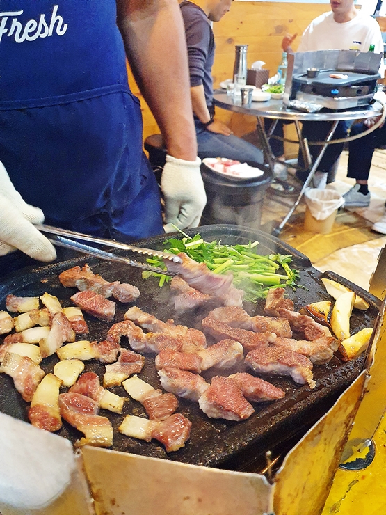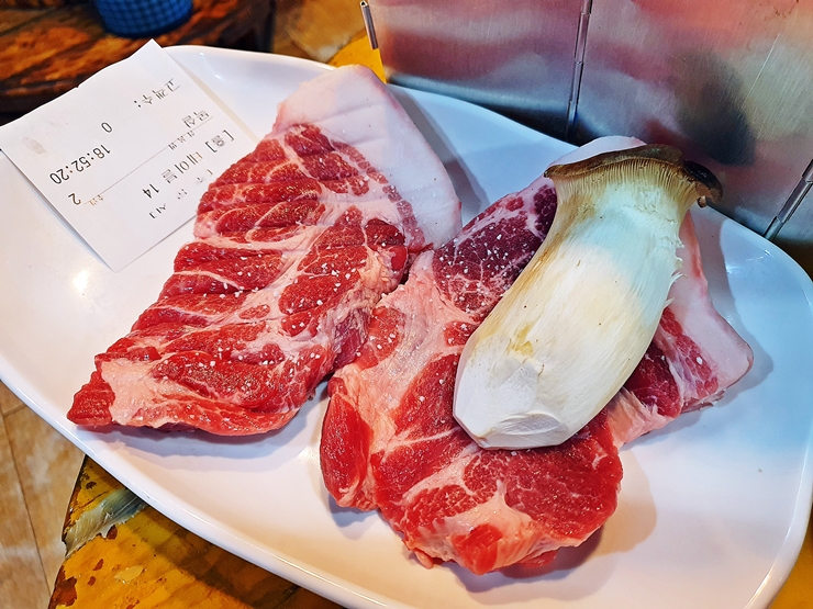 잘 익은 아름다운 목살의 모습. 지금 봐도 참 군침이 도는구나. 조만간 또 방문을 꼭 해야겠다. 이날 짝꿍과 오랜만에 즐겁게 술을 마셔서 그런지 고기 사진을 많이 찍지 못한 것이 아쉽다. 그래도 고기 사진보다 좋은 짝꿍과의 시간을 가졌으니 많이 아쉽지는 않다.
