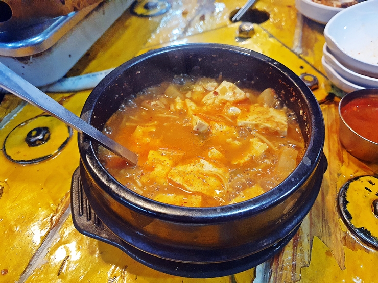 볶음밥과 함께 먹은 된장찌개. 가격에 비해 사이즈가 작아서 살짝 실망하려고 했는데 맛을 보니 굉장히 진하고 구수하고 건더기도 풍부하게 들어 있어서 이내 만족을 표하며 먹었다. 이렇게 사진으로 보니 이날 참 많이 먹긴 먹었구나. 그래도 아직까진 체중 관리가 잘 되는 것 같아 다행이다. 을지로 입구에서 수준 높은 목살과 된장찌개를 즐기고 싶다면 한 번 방문해볼 것을 강력하게 추천하는 곳이다.