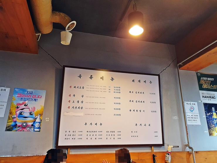 메뉴. 서울고기집의 시그니처 메뉴는 돼지 모둠이다. 목살, 오겹살과 가브리살이 함께 나오는 구성이다. 우린 모둠을 먹을까 하다가 양이 너무 많을 것 같아서 목살을 2인분 주문했다. 하지만 나중에 먹은 양을 보니 그냥 돼지 모둠을 먹는 것이 더 나을 것 같았다. 항상 술자리에선 과식을 하는 것이 문제다.