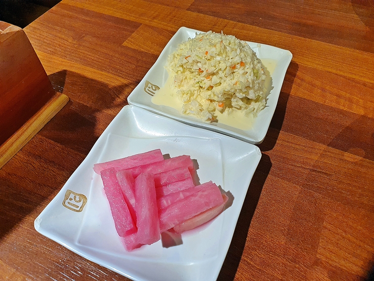 반찬. 특이하게 코울슬로가 함께 나온다. 짝꿍은 코울슬로를 좋아한다. 코울슬로를 잘 먹는 짝꿍을 보니 점원이 코울슬로 하나를 따로 더 내줬다. 오. 이런 소소한 친절은 언제나 고객을 감동시킨다.