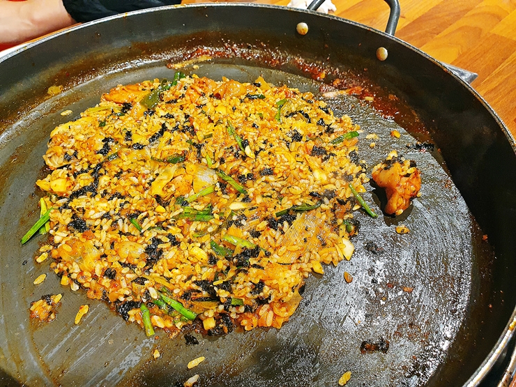 아무리 배가 불러도 볶음밥은 꼭 먹어야 한다. 철판 요리를 먹는데 후식으로 볶음밥을 먹지 않는다면 그것은 철판 요리에 대한 부도덕한 행동이자, 기만이라 할 수 있다. 볶음밥에는 김가루, 부추, 양파와 참기름이 들어간다. 열심히 볶은 볶음밥은 정말 맛있다. 짝꿍과 함께 만족스러운 한 끼를 즐길 수 있었다. 광화문에서 맛있는 닭갈비를 먹고 싶다면 추천하는 곳이다.
