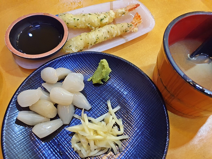 서비스로 나온 새우 튀김과 반찬. 캐주얼한 초밥집에서 볼 수 있는 것들이다. 새우 튀김은 딱 기성품인 것처럼 느껴진다. 하지만 이런 기성품이라도 서비스로 나오면 괜히 기분이 좋고 마음이 막 설레고 두근거린다. 새우 튀김을 한입 먹으니 절로 맥주 생각이 나더라. 아아아, 어서 건강 회복하고 시원한 맥주 마셔야지.