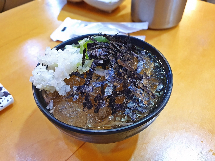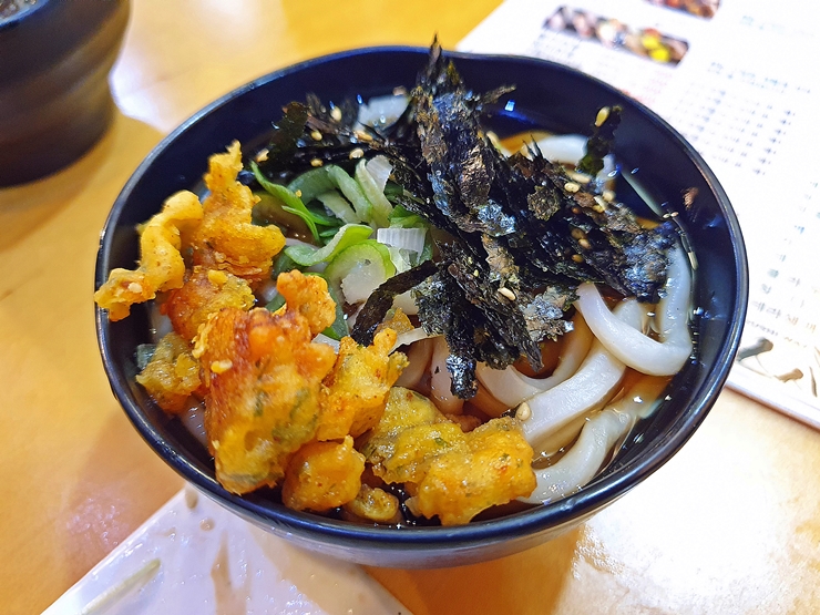 특초밥 세트에 같이 나온 우동. 세트를 주문하면 우동 또는 소바를 고를 수 있는데 1층에 소바 최강집인 미진이 있기 때문에 여기서 소바를 먹을 이유는 없을 것 같아서 우동을 먹었다. 의외로 우동의 탄력이 상당하고 맛이 만족스러웠다.