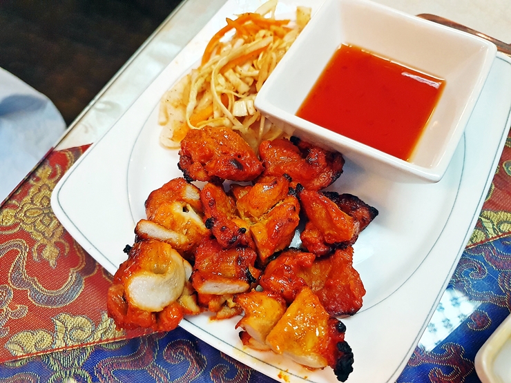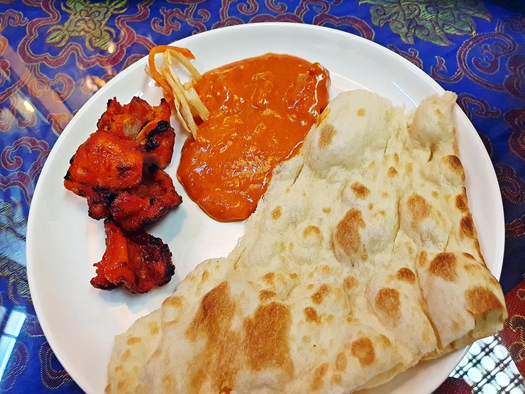 치킨 타카 하프. 매장에서 구운 탄두리 치킨이다. 흔히 볼 수 있는 탄두리 치킨으로 생각했는데 한 입 먹어보니 일반적인 탄두리 치킨에 비해 굉장히 부드럽고 매콤한 맛이 강한 것이 특징이었다.