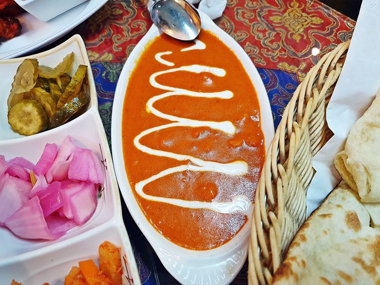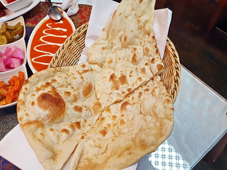 커리와 난. 난은 기본적으로 플레인 난이 나오는데 추가금을 지불하면 다른 난으로 변경이 가능하다. 음식을 주문하기 전에 난을 하나 추가할까 잠시 생각했지만 난이 굉장히 커서 주문을 하지 않은 것이 천만 다행이라 생각하며 난과 커리를 맛있게 즐겼다.