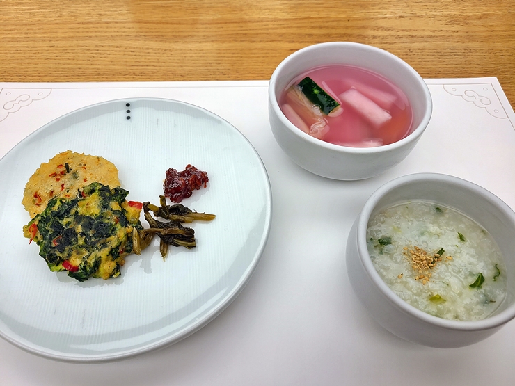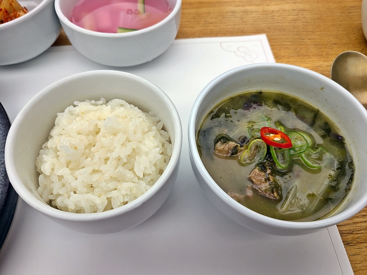밥과 효종갱. 효종갱은 배추, 콩나물, 소 고기 등을 된장 베이스로 푹 끓여 만든 전통 국이다. 효종갱은 "새벽 종이 울릴 때 먹는 국"이라고 한다. 효종갱의 뜻을 알고 나니 새벽이 아닌 점심에 먹어 뭔가 마음이 무거웠지만 그래도 맛있게 잘 즐겼다. 뭔가 고급스러운 우거지 된장국의 맛이 느껴졌다.