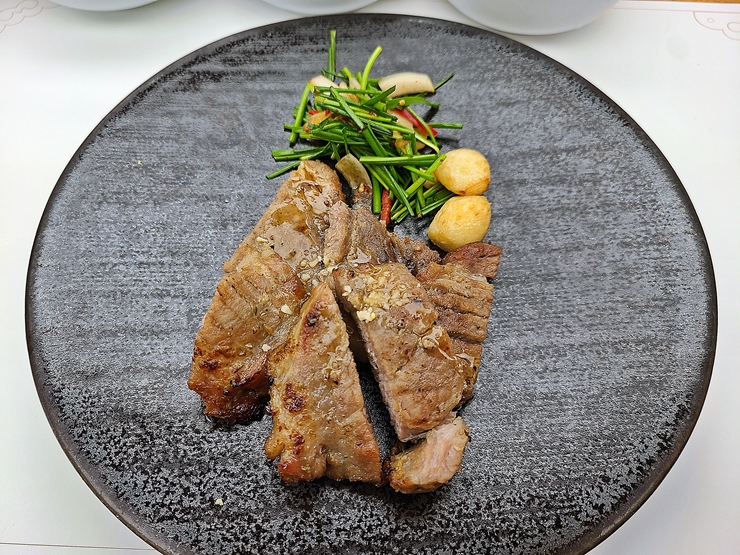 맥적 구이. 맥적 구이는 사랑해 마지 않는 돼지 고기를 된장에 재운 후 구워 만드는 전통 요리다. 간단한 음식인 것 같지만 된장에 재우는 시간, 된장의 염도 등에 따라 맛이 크게 좌우된다. 간단해 보이고 만들기 쉬워 보이는 음식일수록 누가, 어떻게 만드는 지에 따라 맛이 크게 변한다. 한국의 집의 맥적 구이는 짜지 않고 적당한 간에 탄 부분 없이 잘 구워낸 상당히 수준 높은 요리였다. 얼마 전까지의 나였더라면 함께 제공 되는 채소는 거들떠보지도 않았겠지만 이제는 전부 먹고 있다.