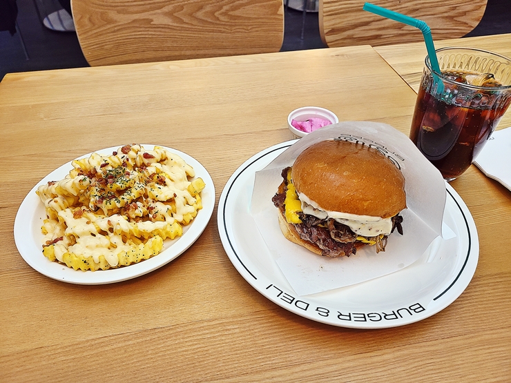 어느 수제 버거집과 다르지 않게 버거와 후라이는 주문이 들어간 후 만들기 때문에 시간이 좀 걸린다. 그렇다고 마냥 불쾌할 정도로 오래 걸리진 않고 조금의 인내심을 가지면 충분히 기다릴 수 있다. 그렇게 차분히 마음을 다스리며 기다리고 있으니 내가 주문한 버거, 후라이와 콜라가 나왔다. 오오, 참으로 아름다운 모습이 아닐 수 없다.
