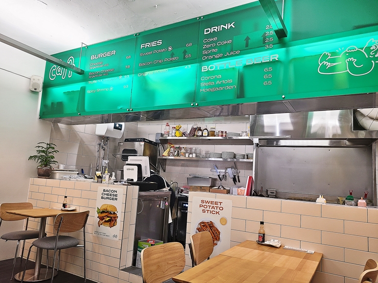 내부는 그리 크지 않고 아담한 편이다. 내가 들어갈 때는 가게에 고객이 많이 없었는데 자리를 잡은 후 주문을 마치고 얼마 지나지 않아 고객들이 많이 들어와 어느덧 만석이 되었다. 맛을 보기 전임에도 어느 정도 검증이 된 것 같아 괜한 안도감을 느끼며 버거가 나오길 기다렸다.