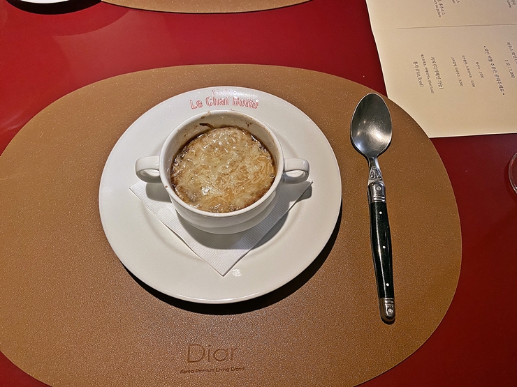 양파 스프. 굉장히 만족스럽게 즐긴 음식이다. 난 더위보다 추위를 못 견디는 편인데 따뜻한 양파 스프가 몸을 따뜻하게 해줬다. 아웃백 같은 곳에서 파는 양파 스프와는 비교할 수 없을 정도로 깊은 맛을 냈다.