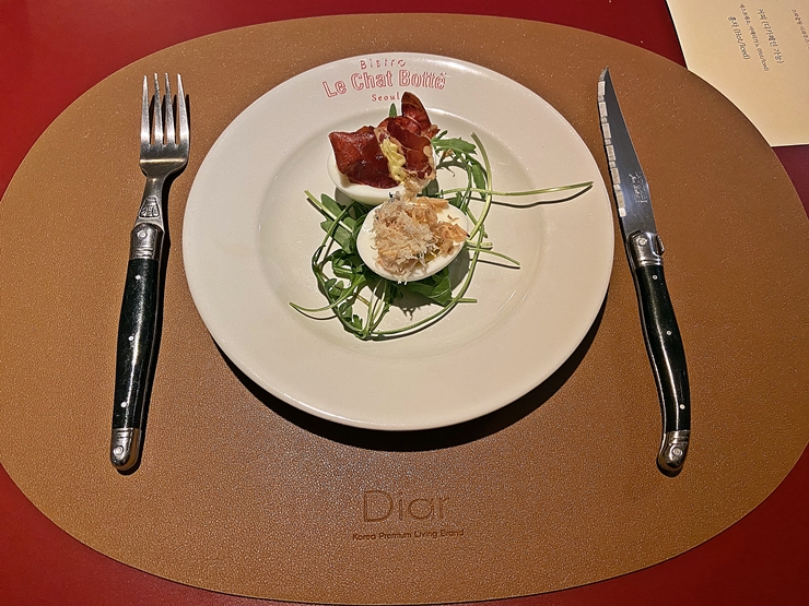 외프 미모사. 대표적인 프랑스 가정식 요리라고 한다. 요리가 마치 노란 미모사 꽃을 닮았다고 해서 외프 미모사라는 예쁜 이름을 붙였다고 한다. 맛은 그냥 마요네즈 달걀과 굉장히 흡사했다.