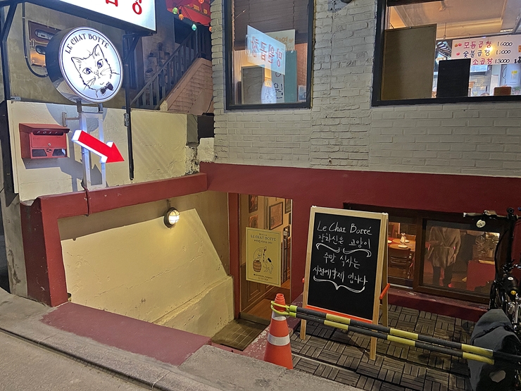 망원역 망리단길에 위치한 프랑스 가정식 요리를 판매하는 장화 신은 고양이. 망원역 2번 출구에서 어렵지 않게 찾아갈 수 있다. ~~리단길은 지금은 국군재정관리단으로 통합된 구 육군중앙경리단이 있던 길에서 유래 되었는데 이젠 의미 없는 곳에도 ~~리단길을 붙이고 있다. 흔한 마케팅의 일환이라는 생각이 들지만 굳이 이렇게 의미 없게 이름을 따라 해야 하나 싶다.