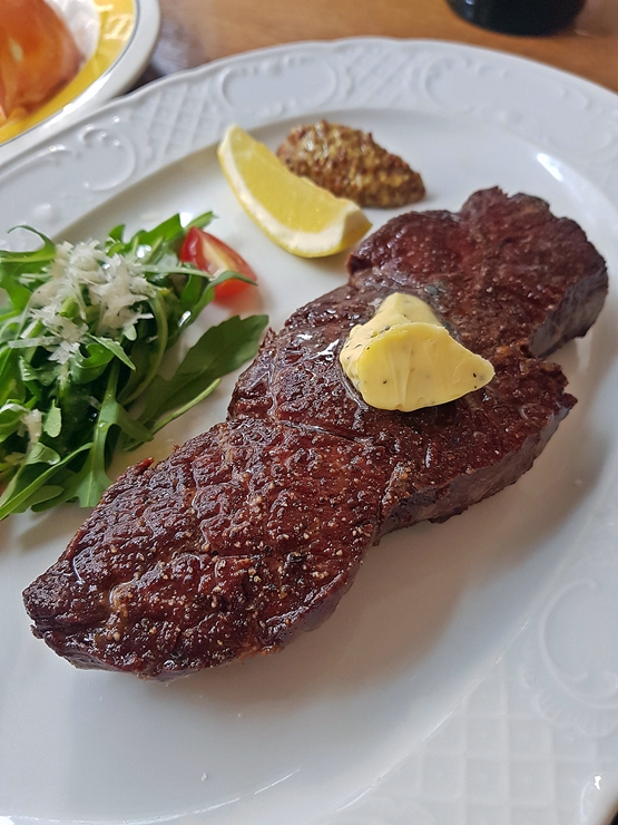 매장 규모에 비해서 스테이크, 파스타, 리조또, 샐러드 등 상당히 다양한 메뉴를 갖추고 있다. 살치살 스테이크 세트를 주문하고 그것만 먹으면 뭔가 아쉽고 서운하고 가슴이 먹먹해질 것 같아서 파스타와 감바스가 나오는 세트도 추가를 했다.