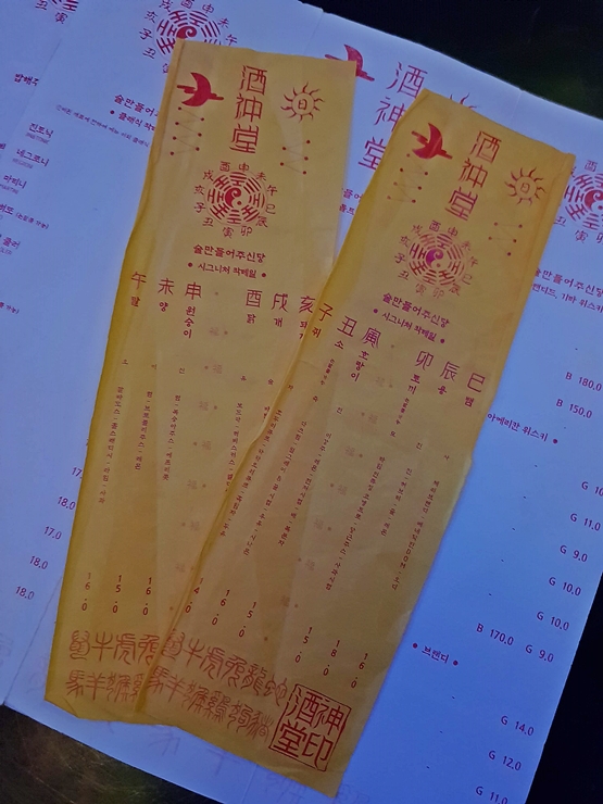 시그니처 칵테일인 어쩌고와 저쩌고. 웬만해선 칵테일 이름과 맛을 잊지 않는데 주신당의 시그니처 칵테일은 인상 깊지 않았다. 이색적인 분위기와 다르게 맛은 굉장히 평범하다. 짝꿍을 만나면서 칵테일을 자주 접해서 그런지 내가 입맛이 까다로워진 것일 수도 있다.