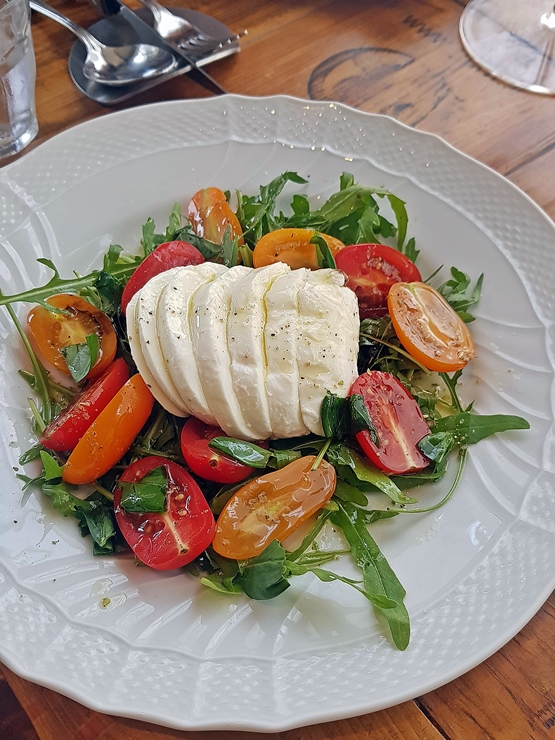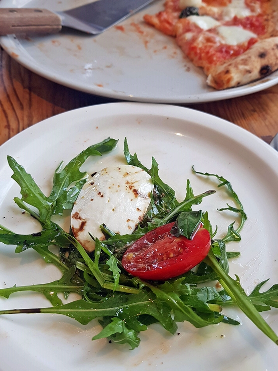 전채로 주문한 카프레제. 루꼴라, 방울 토마토, 모짜렐라 치즈의 구성이다. 고기는 전혀 찾아볼 수 없는 자비 없는 구성이지만 가끔 이런 샐러드를 먹으면 몸이 건강해짐을 느낀다. 이제 나도 나이를 먹을만큼 먹었으니 건강을 챙겨야지.