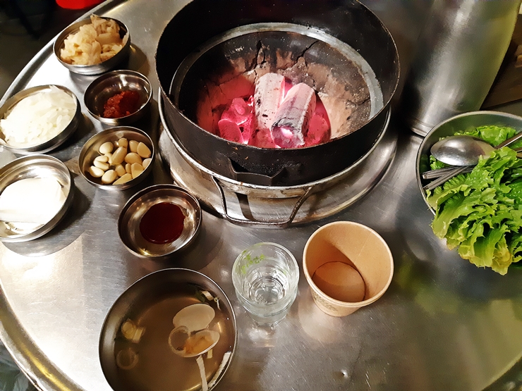 꼼장어. 실로 아름다운 비주얼이 아닐 수 없다. 소금구이는 말 그대로 소금만 이용해서 담백하게 잘 구워냈고, 양념구이는 생각보다 많이 배워보여 흠칫 놀랄 비주얼이었다. 소금구이보다 양념구이가 더 잘 나간다고 하니 먼저 양념구이를 먹고 그 후에 소금구이를 맛봤다. 아, 많이 맵다. 양념구이는 정말 많이 맵다. 나보다 매운 것을 잘 먹는 짝꿍도 맵게 느꼈다. 꼼장어는 이 맛에 먹는 거라고 하지만 너무 맵다. 매운 와중에 확실한 불맛을 느낄 수 있는데 이 불맛이 매운 맛을 더욱 강조시켜서 힘들다. 상추를 싸먹어도 매운 맛이 좀처럼 줄어들지 않는다. 결국 난 두 점 정도를 먹고 양념구이는 포기했다. 짝꿍은 아주 맛있다고 소주를 곁들이며 냠냠. 소금구이는 굉장히 담백하게 구워냈는데 꼼장어의 고소한 맛을 잘 느낄 수 있었다. 그래. 꼼장어는 바로 이런 맛으로 먹는 거다. 꼼장어의 신선도가 상당히 좋아서 비린 맛을 전혀 느낄 수가 없었고 잡내도 전혀 없었다. 오랜만에 굉장히 만족스러운 꼼장어를 즐겼다. 그런데 주위를 둘러보니 소금구이를 먹는 테이블은 없었고 전부 양념구이를 먹고 있었다. 아, 담백한 맛의 즐거움을 모르는 사람들 같으니. 그래도 취향은 언제나 서로 존중해줘야 한다. 종각역 근처에서 불맛 확실하게 매운 꼼장어와 고소한 꼼장어를 같이 먹고 싶다면 추천하는 곳이다.