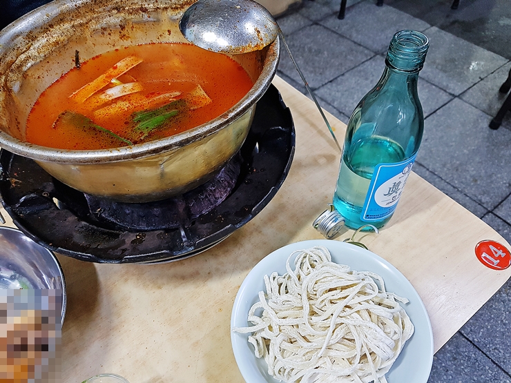 닭볶음탕을 다 먹은 후 볶음밥이나 칼국수를 주문할 수 있는데 둘 다 주문하는 것은 불가하고 하나만 선택해서 주문을 해야 한다. 이 날은 칼국수를 먹기로 했지. 칼국수를 주문하면 육수를 추가해주는데 여기에 칼국수를 넣은 후 익기를 기다리면 된다. 이 시간 역시 굉장한 인고의 시간이 아닐 수 없다.