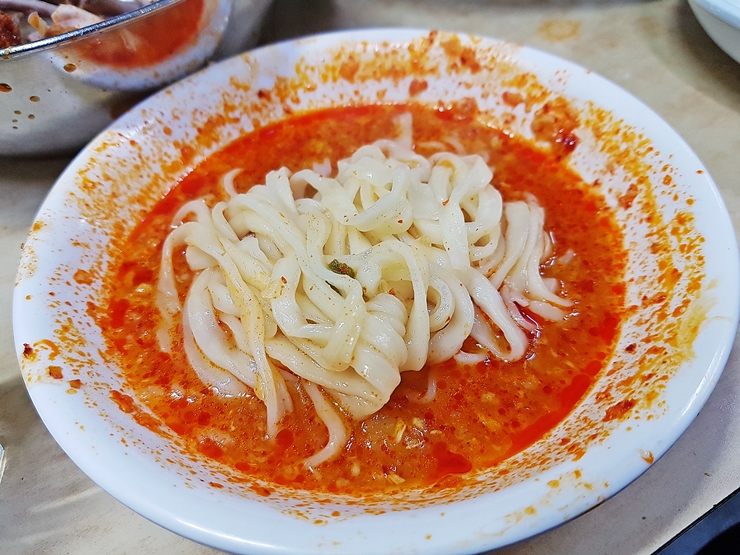 잘 익은 칼국수. 칼국수는 기성품을 사용하는 것 같다. 개성 있는 맛은 없지만 육수와 잘 어울려서 맛있다. 육수가 맛있으니 저절로 맛있는 칼국수가 된다. 칼국수보다 볶음밥이 더 인기가 좋다고 한다. 계림을 처음 가본다면 볶음밥을 주문하고, 몇 번 가봤다면 기호에 맞게 칼국수나 볶음밥 중 하나를 선택해서 맛있게 먹으면 된다. 서울 각지에 분점을 많이 운영하고 있으니 매력 넘치는 마늘 닭볶음탕을 먹고 싶다면 한 번 가볼만한 곳으로 추천하는 곳이다.