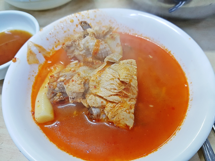 끓이면 끓일수록 진해지는 육수. 계속 끓이다 보면 알싸한 맛이 사라지고 진하고 깊은 맛이 우러나와 탄성을 지르게 한다. 일반 치킨보다 큰 호수의 닭을 사용하지만 잡내가 없고 질김 없이 잘 먹을 수 있다. 오랜만에 먹으니 정말 맛있게 느껴졌다. 감자는 으깬 후 육수와 비벼 먹으면 좋다. 그냥 먹어도 맛있지만 육수와 함께 먹는 감자는 그 맛이 정말 뛰어나기 그지 없다.