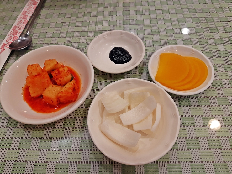 먼저 굴짬뽕밥과 양장피를 주문했다. 원조 굴짬뽕을 먹지 않을 수 없지. 음식을 주문하니 간단한 기본찬이 나온다. 한국식 중화요리 가게에서 볼 수 있는 지극히 흔한 반찬들로 구성이 되어 있다. 이런 노포에서 짜사이가 나오면 괜히 어색하다. 단무지, 양파와 깍두기면 충분하다.