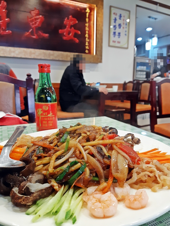 양장피. 굴짬뽕밥보다 양장피가 빠르게 나왔다. 이게 좀 사연이 있는데 주문을 같이 했는데 굴짬뽕밥 주문은 미처 들어가지 않아서 양장피만 나오고 그 후 짬뽕밥이 나왔다. 예전에는 양장피가 참 값어치를 못하는 대표적인 중국 요리라고 생각했는데 이제는 주로 찾게 되는 것 중 하나로 바뀌었다. 이 날은 이과두주와 함께 즐겼다. 대학 다닐 때 이과두주를 참 많이 마셨다. 소주보다 저렴한 값으로 빠르게 취할 수 있으니 이과두주만큼 확실하고 성능 좋은 술이 없었다. 그 때는 무슨 맛으로 마시는 지도 몰랐는데 이제 술 맛을 조금씩 알게 되어서 그런지 예전만큼 거부감이나 부담은 없는 편이다. 겨자 소스를 많이 넣을 경우 맵기 때문에 적당한 양을 넣은 후 잘 비빈 후 냠냠. 화력 좋은 웍에서 빠르고 강하게 볶았는지 각각의 재료가 맛을 잘 유지하면서도 조화를 잘 이루는 맛을 느낄 수 있었다. 오랜만에 수준급의 양장피를 먹으니 만족만족.
