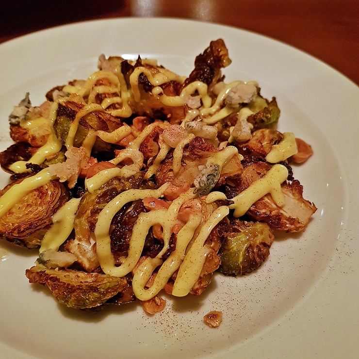 미니 양배추 튀김. 미니 양배추를 노릇노릇 잘 튀긴 후 헤이즐넛과 고르곤졸라 치즈를 곁들였다. 고르곤졸라 치즈가 양배추와 어색하지 않게 굉장히 잘 어울리고 헤이즐넛의 바삭함이 식감의 변화를 재미있게 이끌어준다. 한 입 먹으니 절로 맥주 생각이 났다.