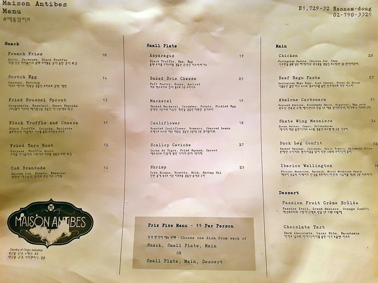 메종 앙티브는 구조가 상당히 신선하다. 반지하에 위치해있는데 반지하 같지 않은 구조로 좋은 분위기를 잘 이끌어냈다. 가끔 이렇게 반지하식 레스토랑이나 식당에 가면 이색적인 분위기를 느낄 수 있다.