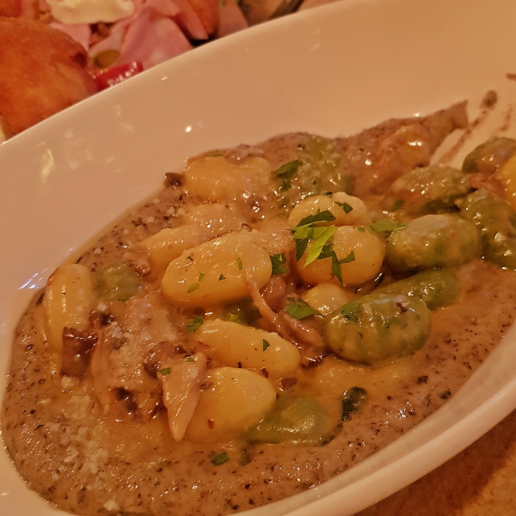 트러플 뇨끼. 알척의 또 다른 시그니처 메뉴. 뇨끼는 감자 전분을 이용해서 만든 파스타인데 식감이 수제비와 비슷하다. 흐물거리는 스타일의 수제비는 아니고 쫀쫀한게 만든 수제비와 비슷하다. 이 날 색상 조절을 잘못해서 전체적으로 빨간 색으로 나왔는데 토마토 베이스의 파스타는 아니고 크림 계열의 파스타다. 크림 소스에 마늘과 허브가 들어가서 느끼함을 잘 잡아줘 쉽게 질리지 않는다. 역시 시그니처 메뉴라고 할 수 있구나.