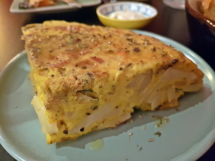 스패니시 오믈렛. 일반적인 오믈렛에 비해 상당히 많은 재료가 들어있다. 양이 적은 사람이라면 이거 하나만 먹어도 제법 배가 부를 수 있다. 감자가 중복 되지 않을까 걱정했지만 기우에 불과했다.