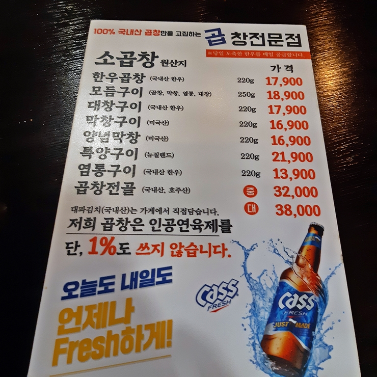 간만에 왕십리로 출동할 일이 생겼다. 그래서 어디를 가서 무엇을 맛있게 먹을까 고민하다가 곱을 방문하기로 결정했다. 곱은 문래동에서 처음 생긴 곱창 가게인데 인기가 좋아서 지금은 프랜차이즈가 되었다. 서울 최고의 맛, 서울 3대 곱창집이라는 타이틀은 어울리지 않지만 적절한 가격에 맛있는 곱창을 먹을 수 있는 곳이다.