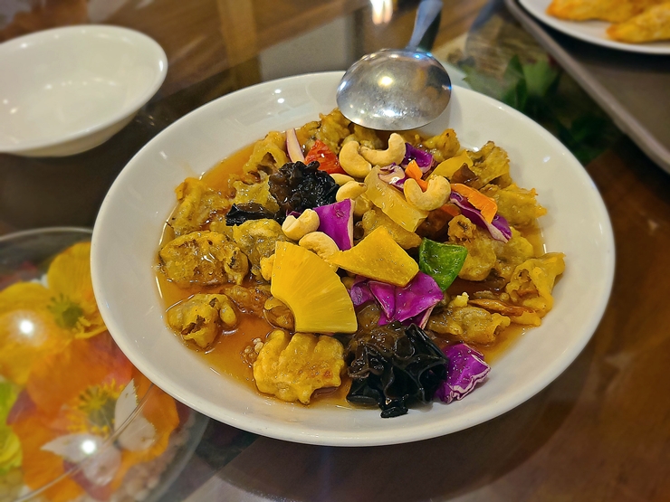 짬뽕. 고기가 들어가지 않은 짬뽕이다. 고추장 맛이 강하게 나고 좀 텁텁하다. 채식 식당 특성상 육수를 사용할 수 없으니 대체품으로 고추장을 사용한 것 같은데 과하게 사용한 감이 없지 않아 있다. 맛, 퀄리티 대비 비싼 느낌이 있고큰 만족도 느끼지 못 한 곳이다.