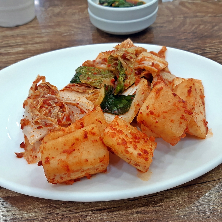 유이한 반찬인 김치와 섞박지. 섞박지보다 김치 맛이 뛰어났다. 김치가 맛이 없다는 뜻은 아니고 섞박지가 예술이었다. 둘 다 직접 담그는 것 같은 맛이다.