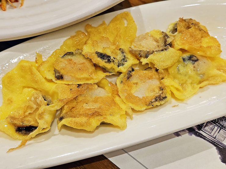 전복전을 부치는 모습은 귀찮으니까 생략 하기로 한다. 잘 부쳐진 전복전의 모습. 전복을 부치는 타이밍이 예술이다. 질기지 않고 부드럽게 잘 씹히는 전복전은 고소한 맛이 일품이었다. 낙지전을 주문했더라면 이런 전복전의 맛을 놓쳤겠구나. 아아, 역시 맛있다.