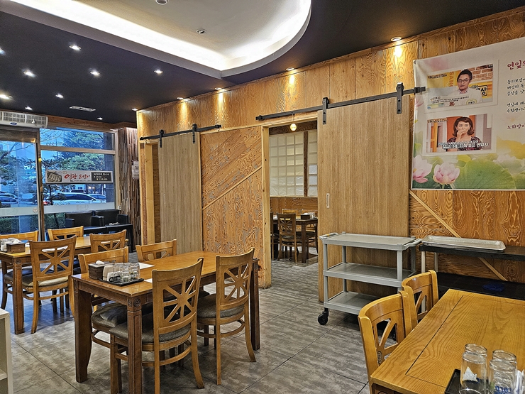 육전 한옥 내부의 모습. 고풍스러운 모습은 아니지만 전형적으로 한식 음식을 파는 곳의 모습을 보이고 있다. 단체 고객을 맞이할 수 있도록 미닫이 형식으로 되어 있는 세미 룸도 준비 되어 있다. 우리는 일행이 많지 않았기 때문에 홀에 앉아 식사를 즐기기로 했다.