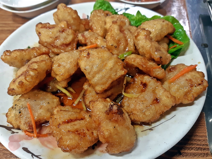 꿔바로우. 여기서 꿔바로우는 처음 먹어봤는데 상당히 인상 깊은 맛이다. 소스의 맛이나 튀긴 정도가 수준급이다. 지난 번 지삼선을 먹었을 때와 같은 감동이다.