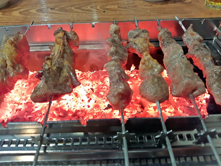 조심조심 양갈비 꼬치구이를 올리고, 잘 익을 때까지 기다린다. 구워지고 있는 양고기의 향이 나의 식욕을 자극한다. 아아, 지금 봐도 군침이 싹 돈다.