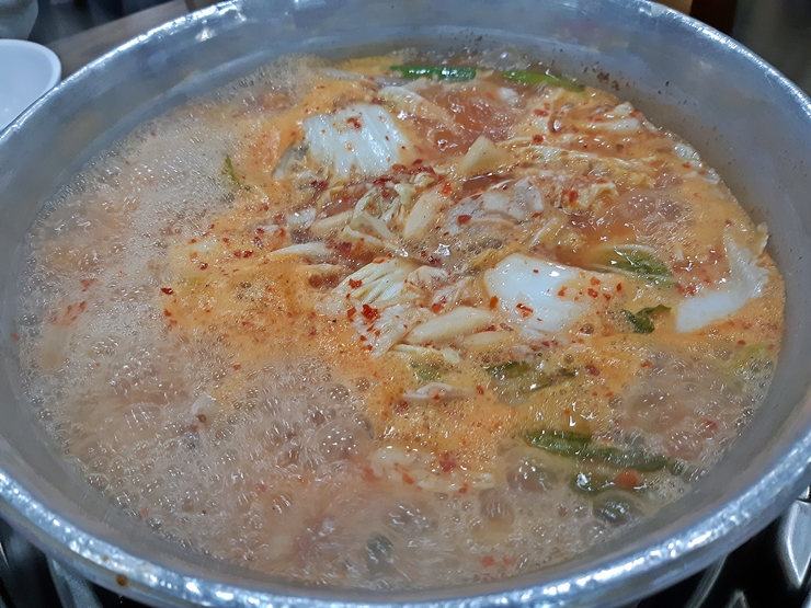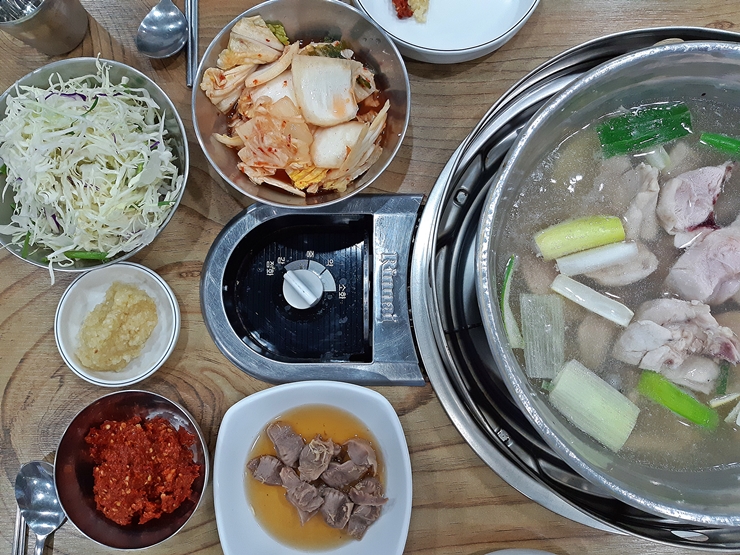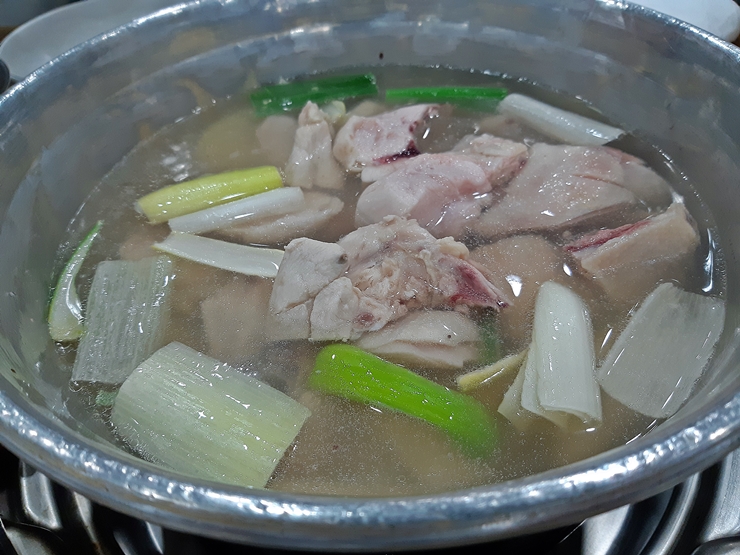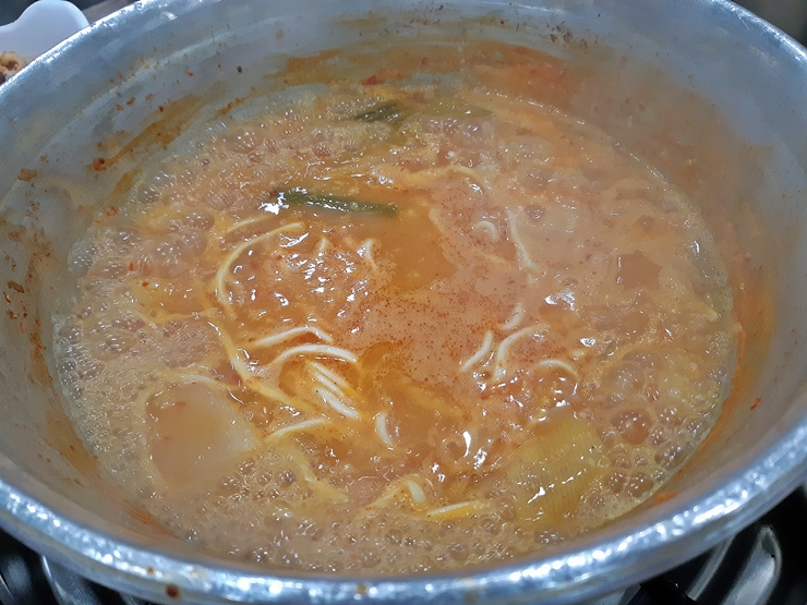 닭을 얼추 건져 먹으면 죽이나 칼국수 중 하나를 선택해서 후식 혹은 식사 형식으로 먹을 수 있다. 우리는 죽 대신 칼국수를 선택. 육수를 조금 추가한 후 면이 잘 익을 때까지 기다린다. 아아, 또 인고의 시간이다. 그러나 이 시간을 견디고 또 견디면 맛있는 칼국수를 먹을 시간이 다가온다.
