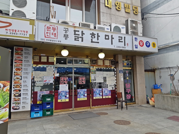 동대문 닭 한 마리 골목에 있는 공릉 닭한마리. 본점은 이름과 같이 공릉에 위치해있고 각지에 분점을 두고 있다고 한다. 동대문에 있는 곳 역시 분점이다. 바로 옆에 동대문 닭 한 마리 골목에서 가장 유명한 진옥화할매원조닭한마리가 있다. 아무래도 지명도나 인기 때문인지 비교적 고객이 많지 않았다. 비교적 많지 않았던 것 뿐이지, 안에 들어갔을 때에는 두 자리를 제외하고 만석이었다.