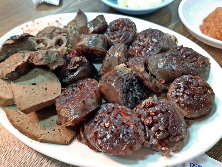 언제나 나오는 모둠 순대. 이 모둠 순대는 리필이 가능하며 리필을 할 때에는 부속물은 제외하고 순대만 주는 특징이 있다. 아무래도 단가 차이가 있으니 그렇게 운영을 하는 것 같다. 순대는 뭐 일반 순대 맛과 다를게 없다. 그래도 쌈장에 콕 찍어 먹는 순대는 저절로 소주를 부르는 맛이 아닐 수 없다.